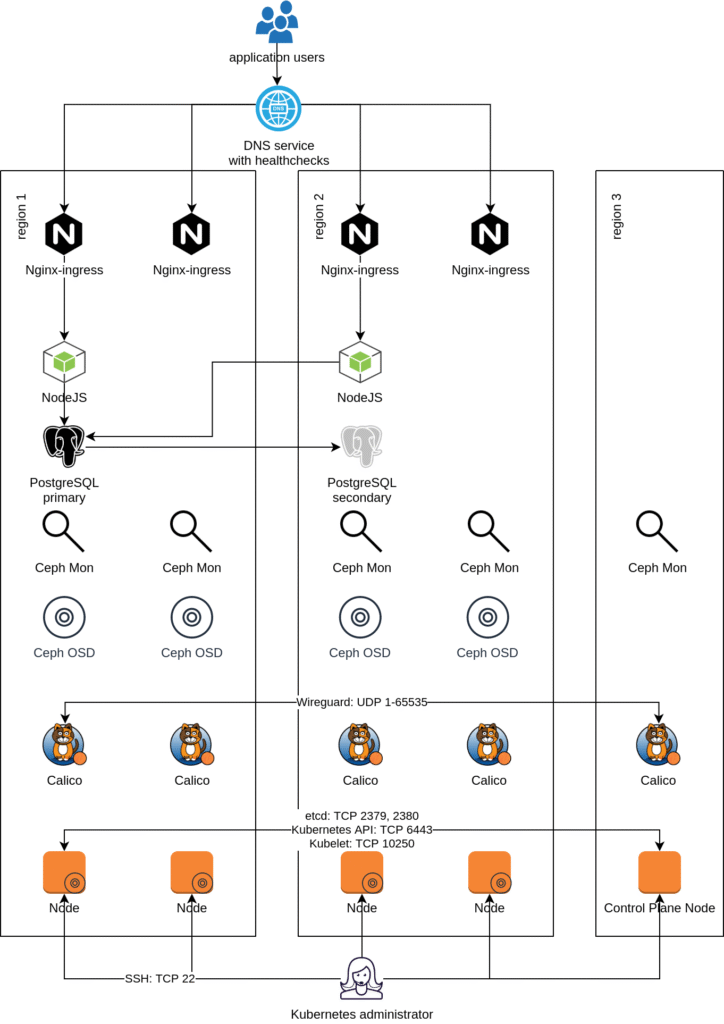 Several court rulings and a guideline from the European Data Protection Board (EDPB) made it clear: It is a huge legal risk to process EU personal data on US-owned clouds. Therefore, many Kubernetes operators are scrambling to port their environments to an EU cloud provider or their on-prem data centers. Unfortunately, such environments often lack the notion of “availability zone”, which makes cross-data-center redundancy difficult. In this post, we will show you how we dealt with this requirement using Kubernetes, Rook / Ceph, Calico and WireGuard.